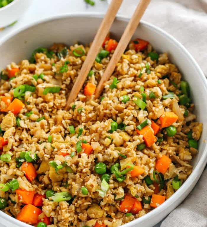 Continue readingSkip the takeout and enjoy this Healthy Cauliflower Fried Rice recipe in just 15 minutes! Packed with veggies, low in