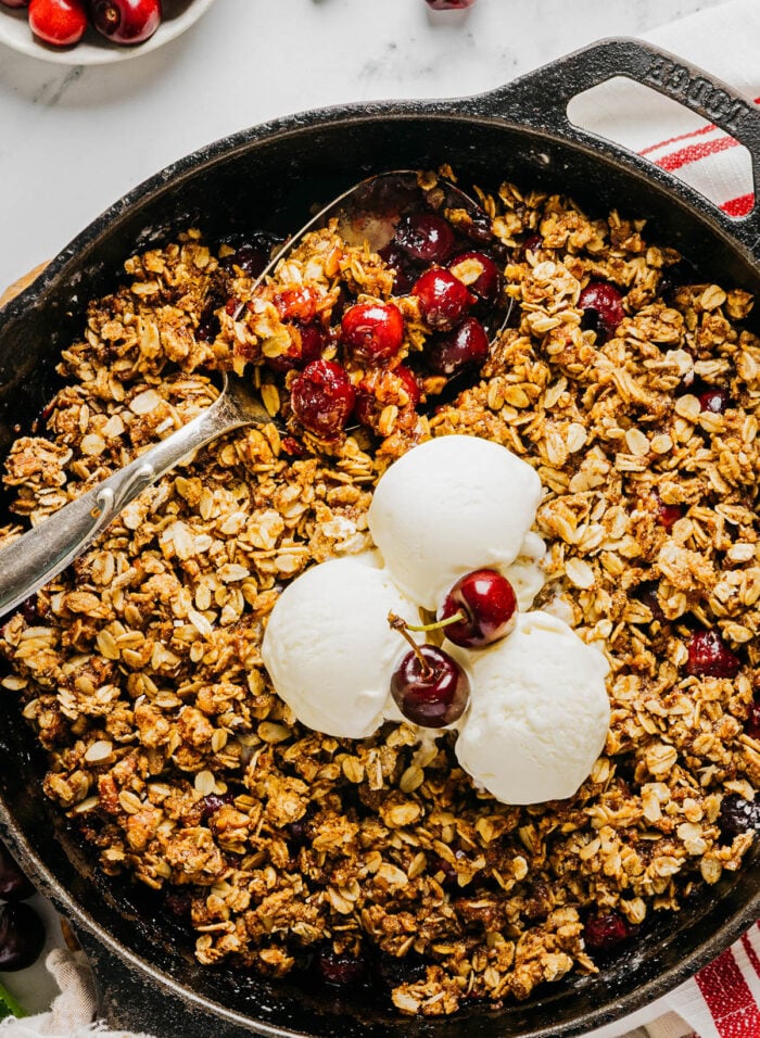 • Swap the fruit – swap out the cherries for strawberries, raspberries, blueberries, blackberries, peaches, or other fresh fruit. Check out my apple crisp recipe!