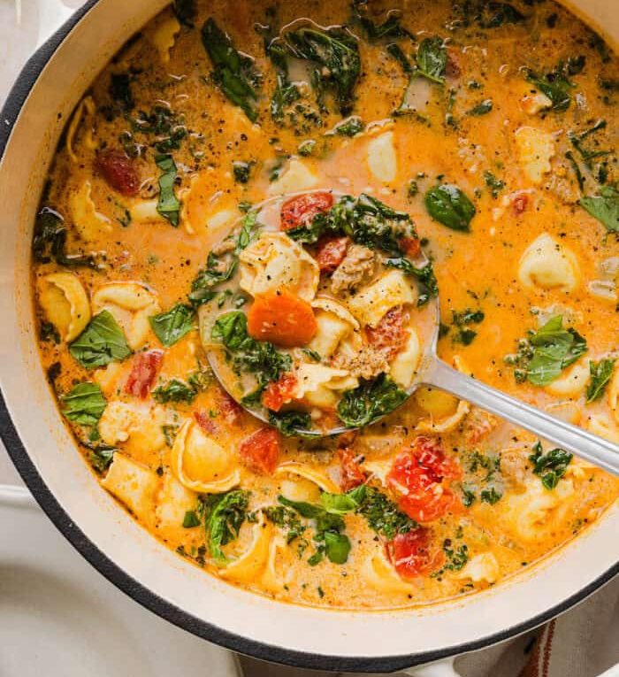 Continue readingThis Creamy Tortellini Soup recipe is cozy, comforting and made with tender cheese tortellini, fresh veggies, herbs and a rich