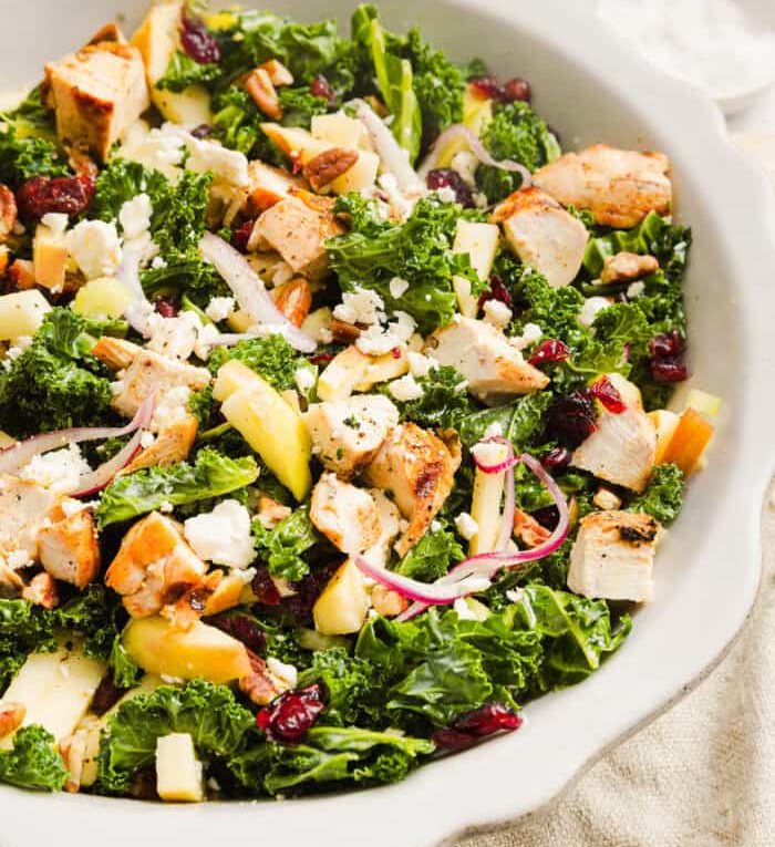 This fresh and flavorful Harvest Chopped Chicken Salad is made with leafy kale, tender juicy chicken, chopped apples and crunchy